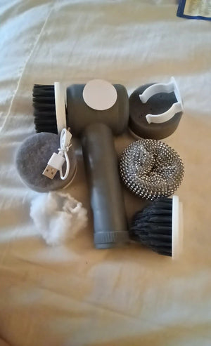 Tackle tough grime fast with cordless electric cleaning power and USB recharge convenience