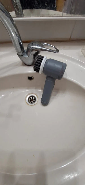 Safe to use with common bathroom and kitchen cleaners. Apply cleaner first, then let the rotating brush lift grime—no heavy scrubbing required.