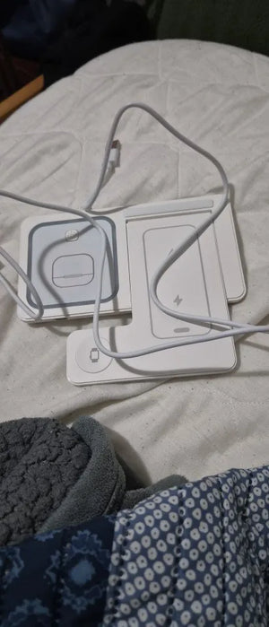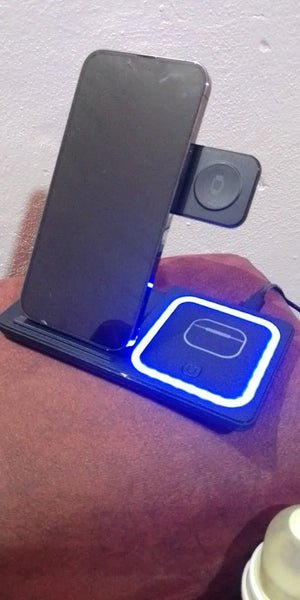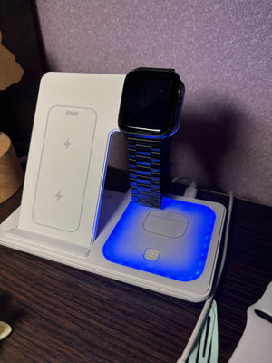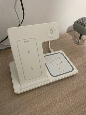 One magnetic wireless charger stand replaces three chargers. Charge iPhone, Apple Watch and AirPods on a single desk spot for clutter-free mornings and faster top-ups.
